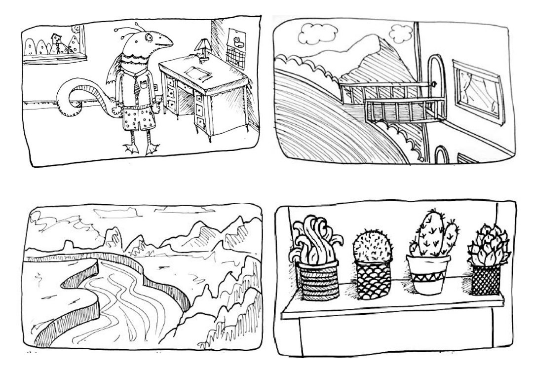 Beating the world’s colouring page shortage one square at a time. If you need to colour weird things like lizards at desks or pizza lawns or monsters serving monsters on platters, look no further: