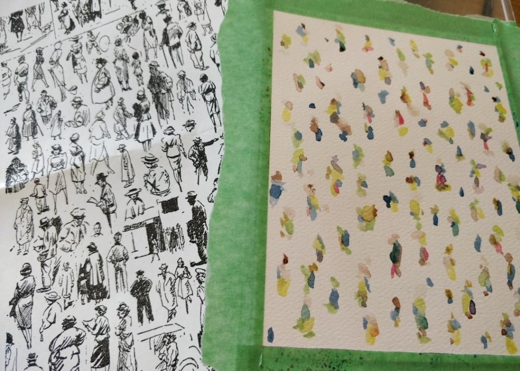 I started with tiny watercolour dots everywhere. Random and unplanned.