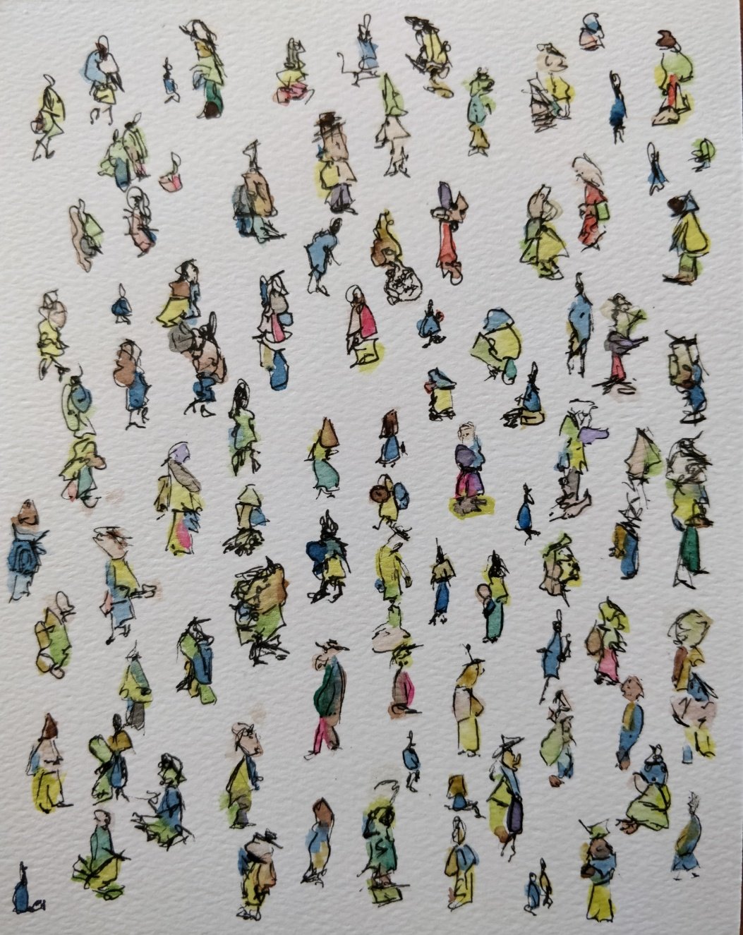 Then I used my handy black pen to find the people. They often didn’t emerge until the very very end – the very last flick. Pretty sure many of them are still hidden behind clusters of sketch.