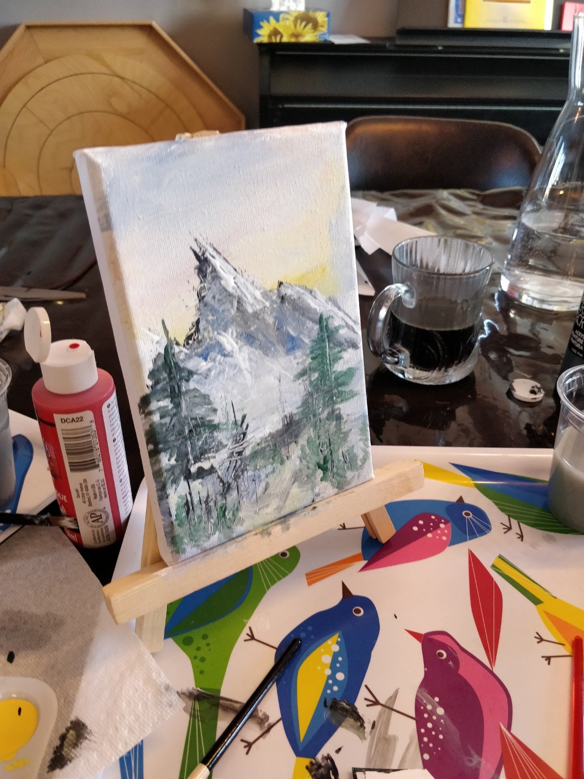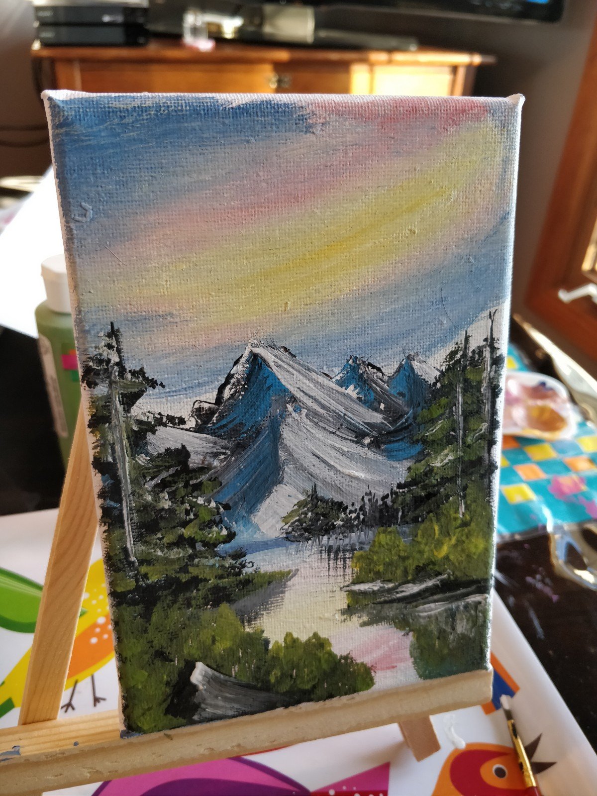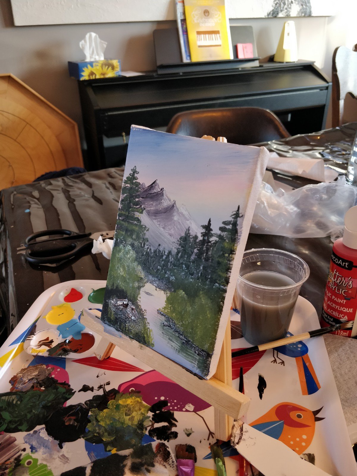 It’s not uncommon around here for my daughter and I (and sometimes others if we can convince them to be willing) to toss on a Bob Ross episode and make a mess. These are the results of those messes.