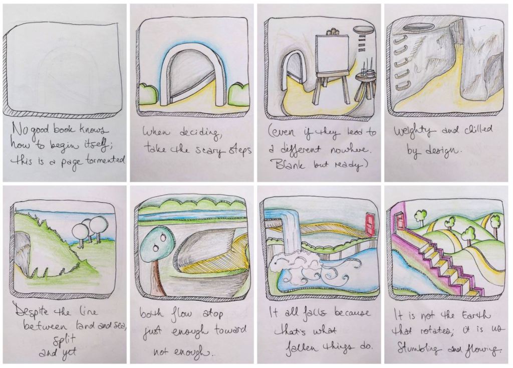 I ordered my first book in October of 2019. In true procrastinator’s style, I waited for a good two months to begin, leaving me less than a month to return it. For those who don’t know what the Brooklyn Art Library’s crowd-sourced Sketchbook Project is all about, check them out here. This is the product of procrastination. I call it Very Impossible Portals Into.